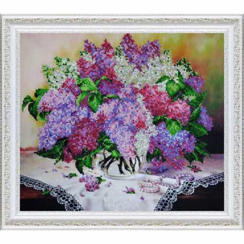 Набор для вышивки Букет сирени, P-213 состоит из габардиновой схемы со стойкими цветами, которые не боятся стирки и не выцветают, чешского бисера Preciosa (или TOHO и бусин), иструкции и двух бисерных игл.