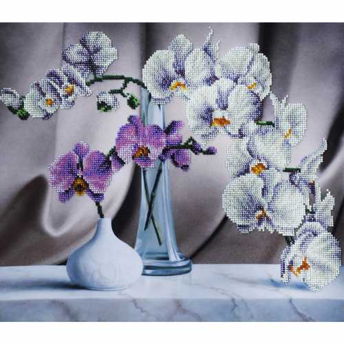 Набор для вышивки Натюрморт с орхидеями, P-243 состоит из габардиновой схемы со стойкими цветами, которые не боятся стирки и не выцветают, чешского бисера Preciosa (или TOHO), иструкции и двух бисерных игл.