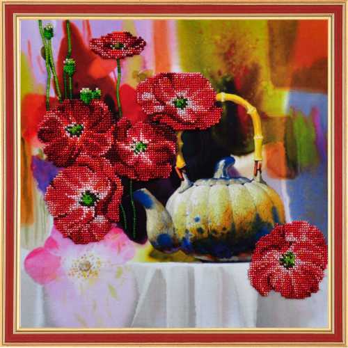 Набор для вышивки Цветочная акварель-1, P-142 состоит из габардиновой схемы со стойкими цветами, которые не боятся стирки и не выцветают, чешского бисера Preciosa (или TOHO), иструкции и двух бисерных игл.