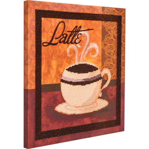 В набор для вышивания бисером Latte-1 ТМ Волшебная страна входит схема, напечатанная на плотном хлопчатобумажном полотне, которое натянуто на подрамник, бисер Preciosa, игла с нитью, инструкция и небольшой подарок.
