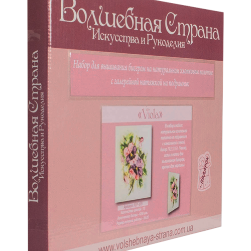 В набор для вышивания бисером Viola ТМ Волшебная страна входит схема, напечатанная на плотном хлопчатобумажном полотне, которое натянуто на подрамник, бисер Preciosa, игла с нитью, инструкция и небольшой подарок.