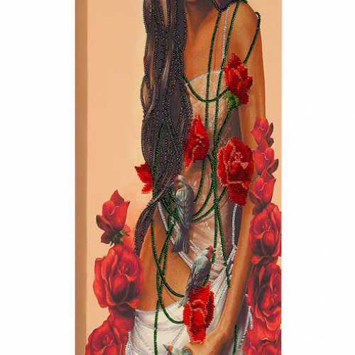 В набор для вышивания бисером Смуглянка ТМ Волшебная страна входит схема, напечатанная на плотном хлопчатобумажном полотне, которое натянуто на подрамник, бисер Preciosa, игла с нитью, инструкция и небольшой подарок.