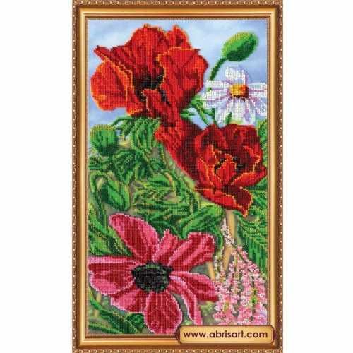 Набор для вышивки бисером на холсте Дикие маки 3, 24х45.5см, AB-271, Абрис Арт