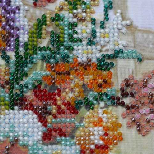 Набор для вышивки бисером на художественном холсте Сад богов-3 харьковского производителя Абрис Арт кроме самого холста с нанесенной на него картиной и схемой содержит бисер (чешский Preciosa или японский Matsuno), бисерную иглу и инструкцию.