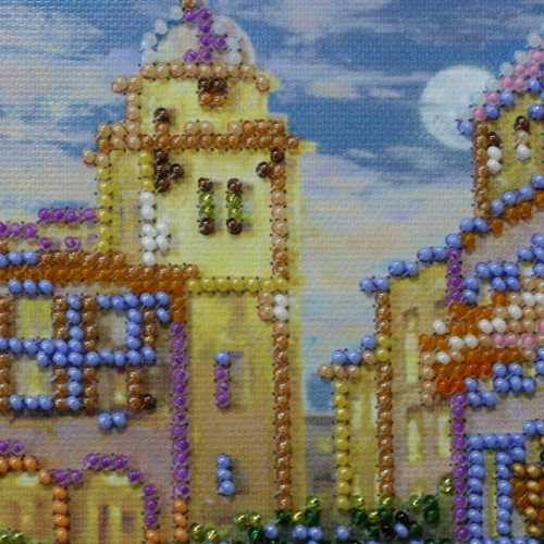 Набор для вышивки бисером на художественном холсте Теплая ночь харьковского производителя Абрис Арт кроме самого холста с нанесенной на него картиной и схемой содержит бисер (чешский Preciosa или японский Matsuno), бисерную иглу и инструкцию.