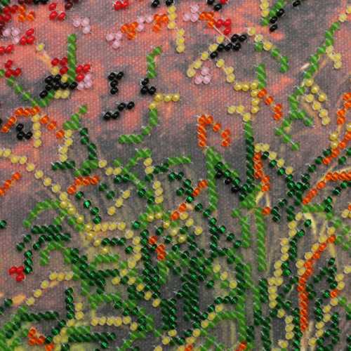 Набор для вышивки бисером на художественном холсте Осенние зарисовки-1 харьковского производителя Абрис Арт кроме самого холста с нанесенной на него картиной и схемой содержит бисер (чешский Preciosa или японский Matsuno), бисерную иглу и инструкцию.