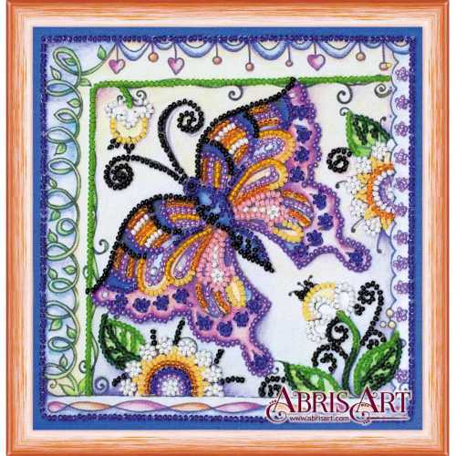 Набор для вышивки бисером Бабочка в цветах, AM-144, Абрис Арт (производство Украина, Харьков) содержит схему, нанесенную акриловыми красками на художественный холст, чешский или японский бисер, бисерную иглу и инструкцию.