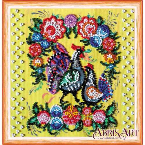 Набор для вышивки бисером Городецкая роспись, AM-133, Абрис Арт (производство Украина, Харьков) содержит схему, нанесенную акриловыми красками на художественный холст, чешский или японский бисер, бисерную иглу и инструкцию.