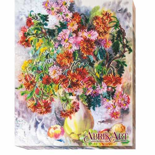 Набор для вышивки бисером Хризантемы, AB-490, Абрис Арт (производство Украина, Харьков) содержит схему, нанесенную акриловыми красками на художественный холст, чешский или японский бисер, бисерную иглу и инструкцию.