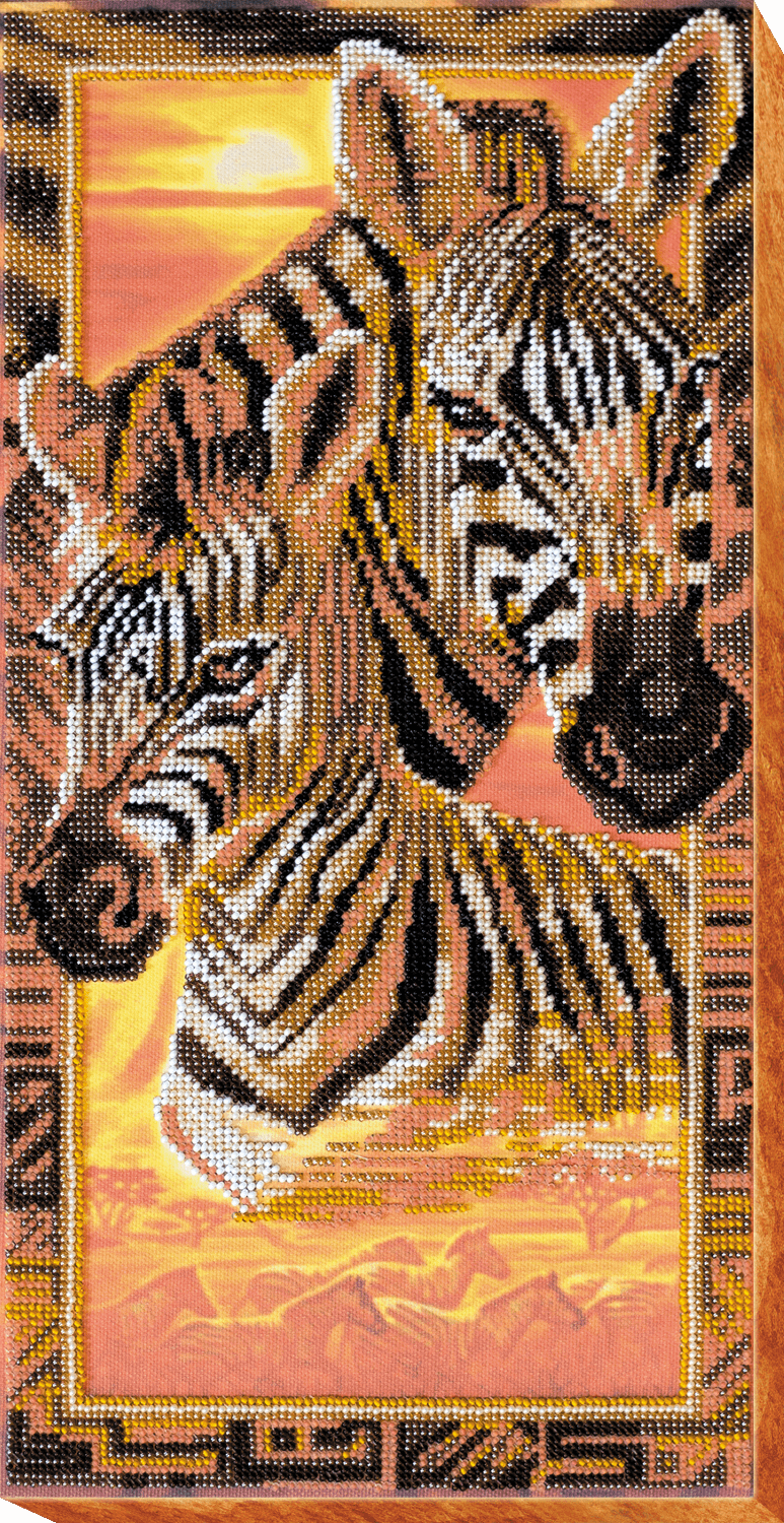 Набор для вышивки бисером на холсте Зебры, AB-539, Абрис Арт (Харьков) содержит схему, нанесенную акриловыми красками на художественный холст, чешский или японский бисер, бисерную иглу и инструкцию.