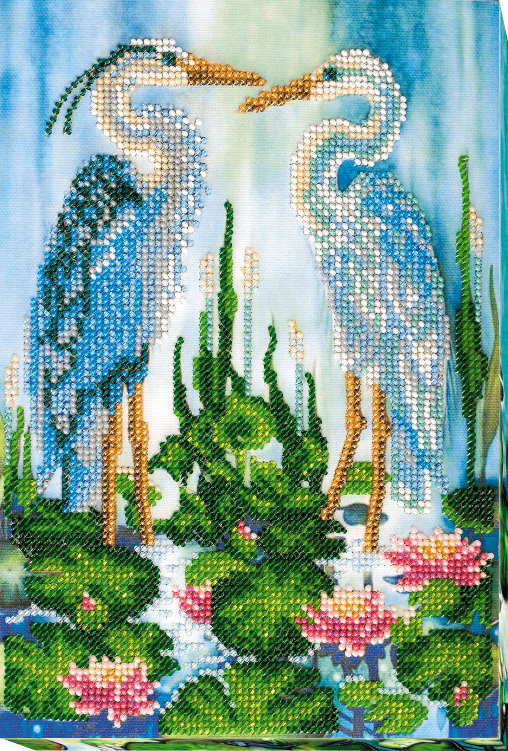 Набор для вышивки бисером на холсте Цапли, AB-554, Абрис Арт (Харьков) содержит схему, нанесенную акриловыми красками на художественный холст, чешский или японский бисер, бисерную иглу и инструкцию.