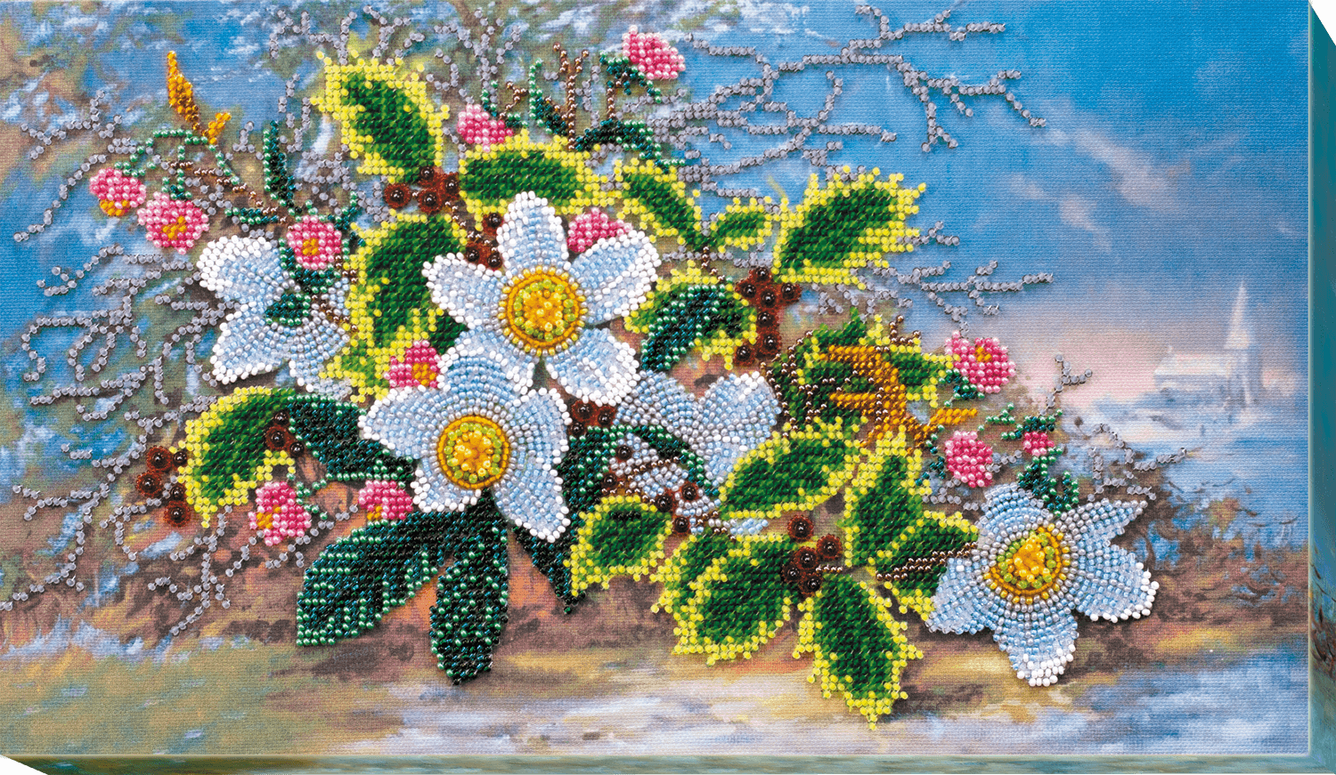 Набор для вышивки бисером на холсте Рождественский букет, AB-565, Абрис Арт (Харьков) содержит схему, нанесенную акриловыми красками на художественный холст, чешский или японский бисер, бисерную иглу и инструкцию.
