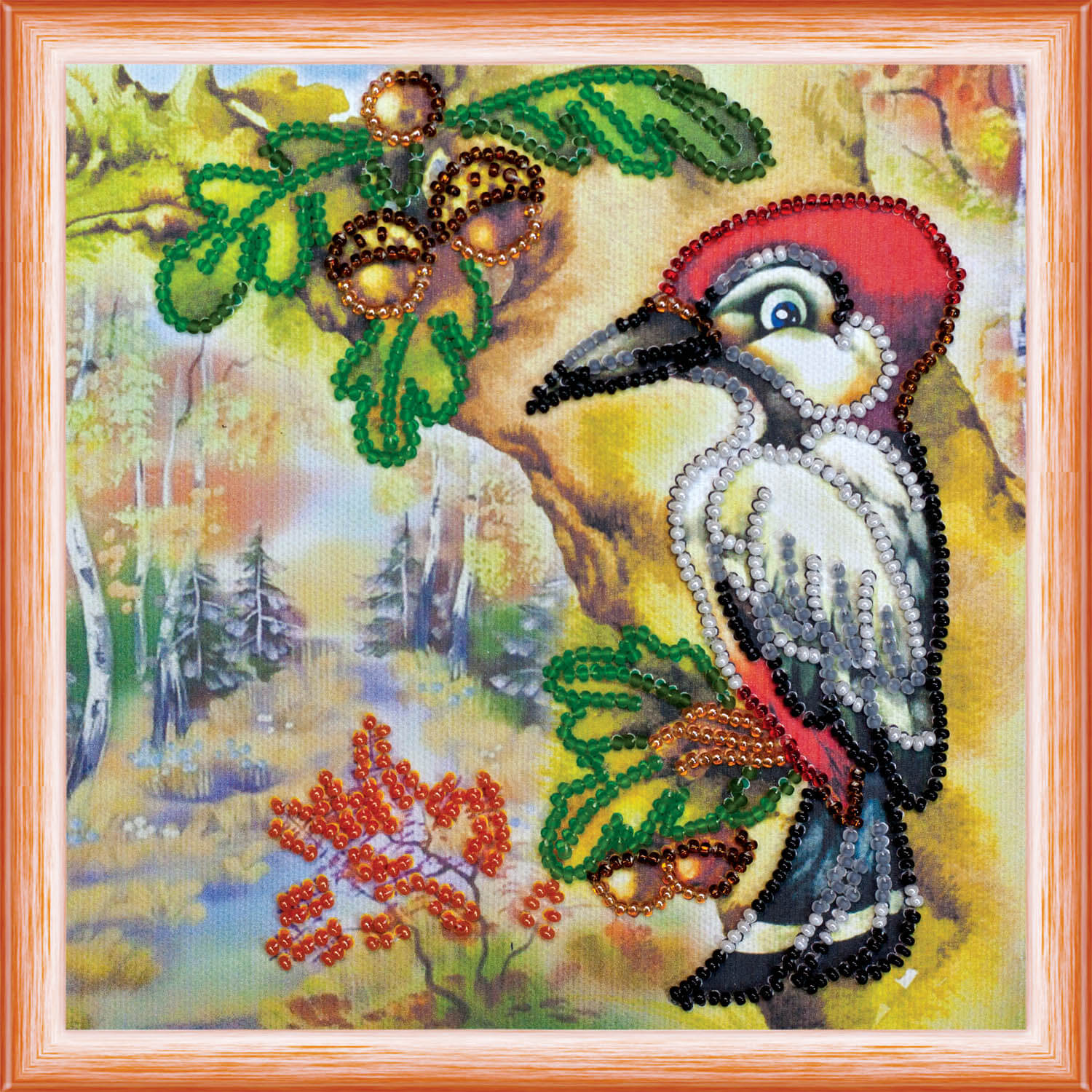 Набор для вышивания бисером на художественном холсте На дубочке, 150x150мм, AM-092, Абрис Арт