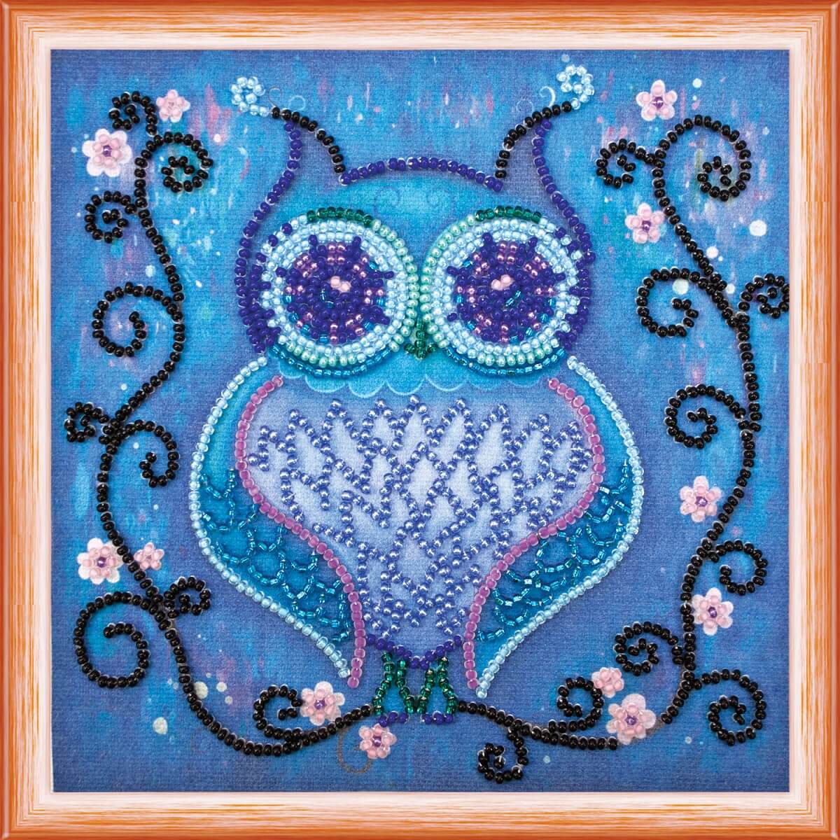 Набор для вышивания бисером на художественном холсте Синяя сова, 150x150мм, AM-105, Абрис Арт
