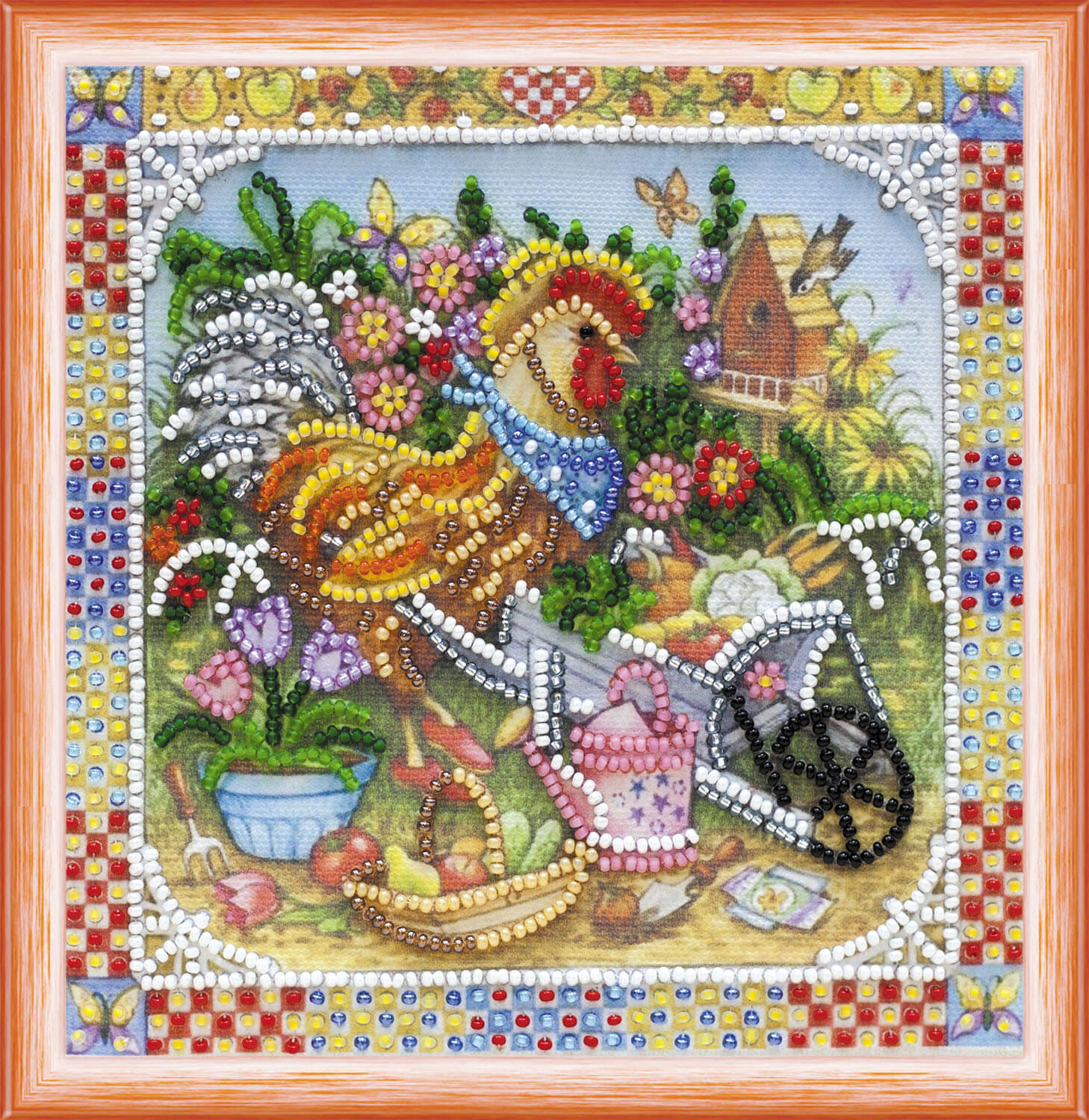 Набор для вышивки бисером на холсте Петушок-садовник, AM-123, Абрис Арт (производство Украина, Харьков) содержит схему, нанесенную акриловыми красками на художественный холст, чешский или японский бисер, бисерную иглу и инструкцию.