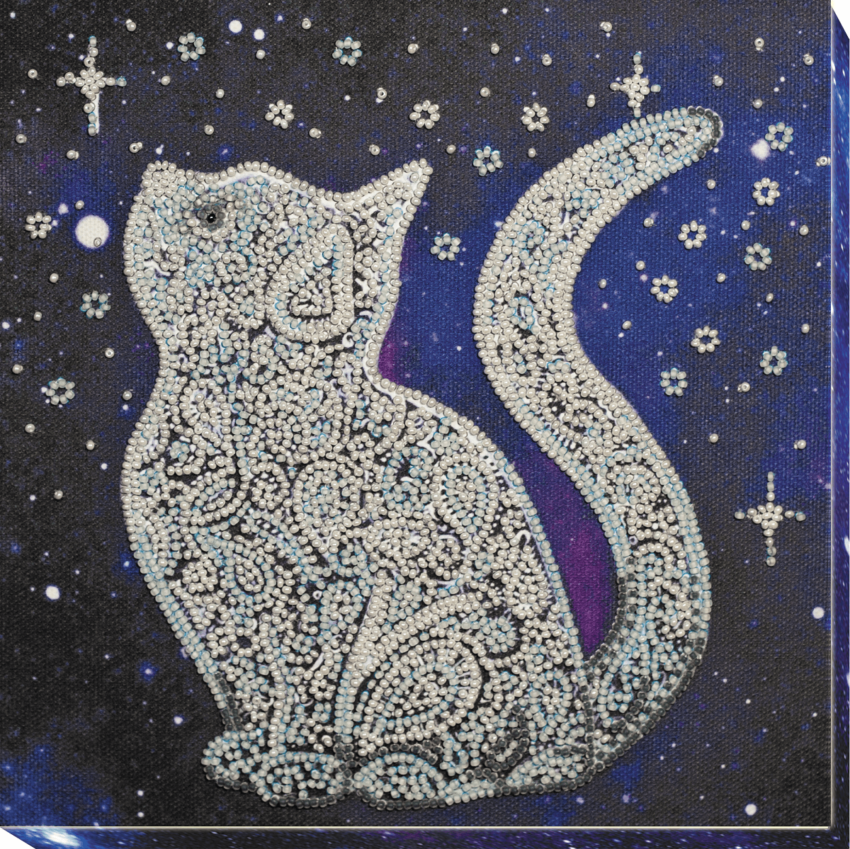 Набор для вышивания бисером на холсте Звёздный кот, 20х20см, AMB-052, Абрис Арт