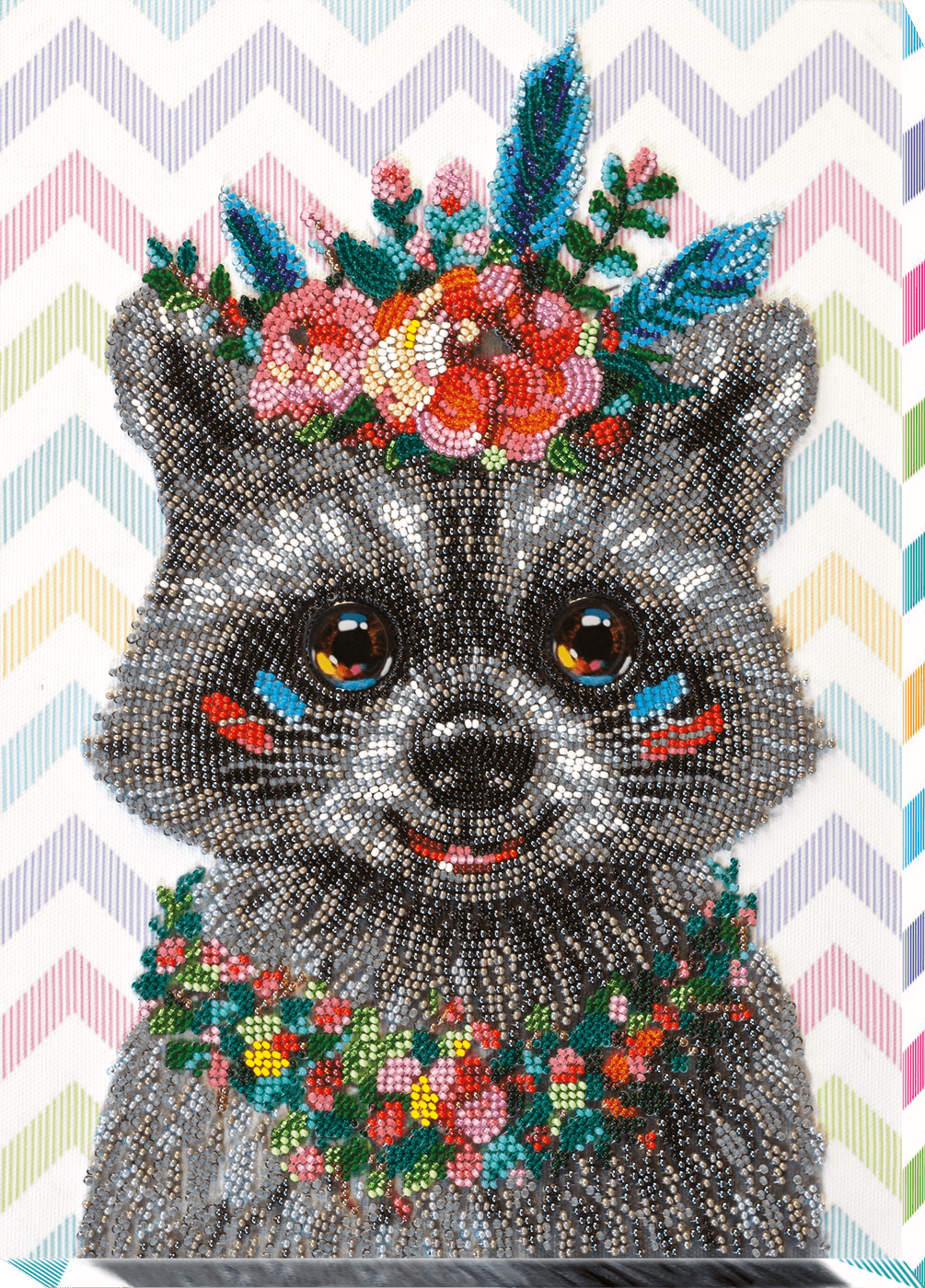 Набор для вышивки бисером Разыскивается енот, AB-707, Абрис Арт (производство - Украина, Харьков) содержит схему, нанесенную акриловыми красками на художественный холст, чешский или японский бисер, бисерную иглу и инструкцию.