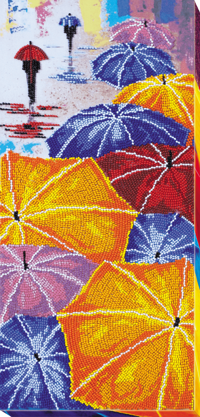 Набор для вышивки бисером Зонтики, AB-713, Абрис Арт (производство - Украина, Харьков) содержит схему, нанесенную акриловыми красками на художественный холст, чешский или японский бисер, бисерную иглу и инструкцию.