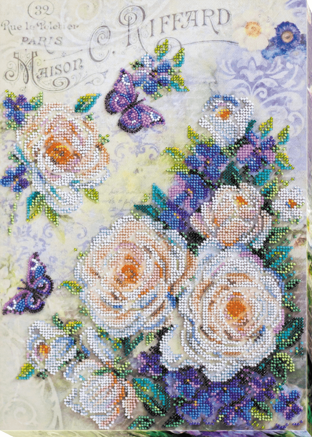 Набор для вышивки бисером Цветы для любимой, AB-716, Абрис Арт (производство - Украина, Харьков) содержит схему, нанесенную акриловыми красками на художественный холст, чешский или японский бисер, бисерную иглу и инструкцию.