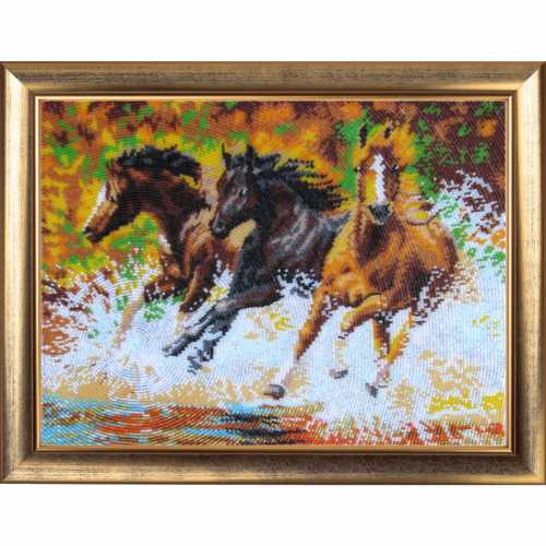 Набор для вышивки бисером с полной зашивкой и круговой техникой В звонком топоте копыт, арт. bf623, ТМ Butterfly содержит атласную схему, бисер Preciosa (Чехия, 17 цветов), инструкцию и иглу для вышивания.