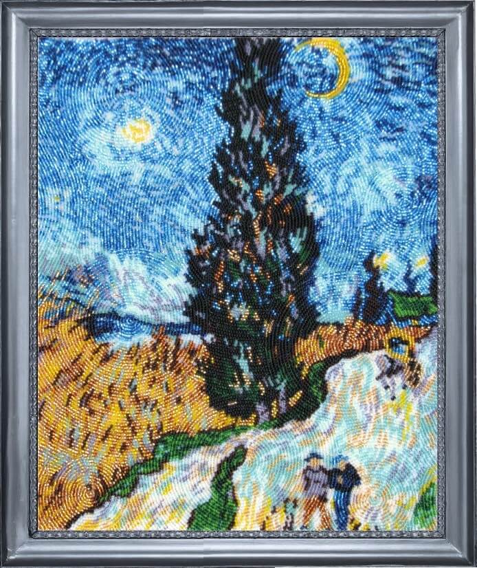 Набор для вышивки бисером с полной зашивкой Дорога с кипарисами (по мотивам В. Ван Гога), арт. bf364, ТМ Butterfly содержит атласную схему, бисер Preciosa (Чехия, 16 цветов), инструкцию и иглу для вышивания.