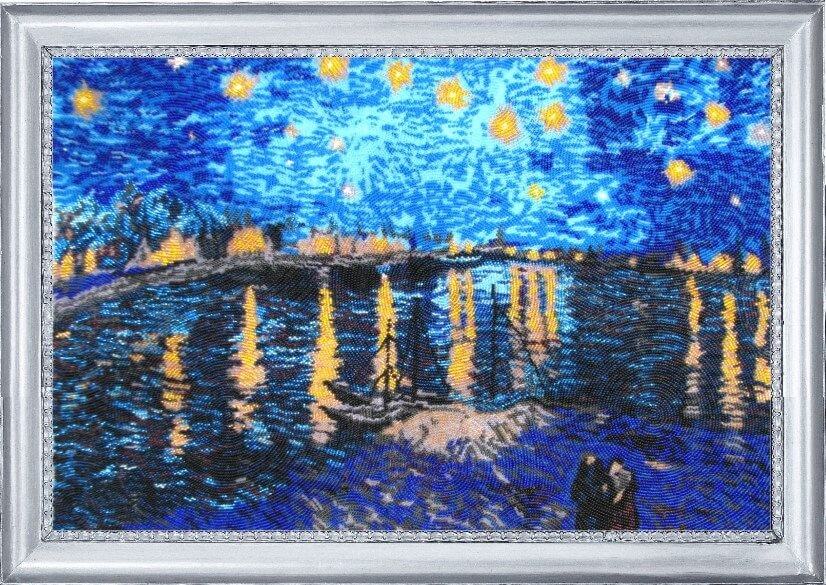 Набор для вышивки бисером с полной зашивкой Звездная ночь над Роной (по мотивам В. Ван Гога), арт. bf365, ТМ Butterfly содержит атласную схему, бисер Preciosa (Чехия, 15 цветов), инструкцию и иглу для вышивания.
