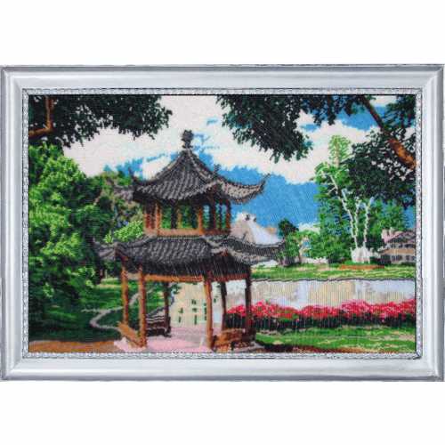 Набор для вышивки бисером с полной зашивкой и круговой техникой Китайский садик, арт. bf328, ТМ Butterfly содержит атласную схему, бисер Preciosa (Чехия, 19 цветов), инструкцию и иглу для вышивания.