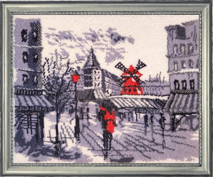 Набор для вышивки бисером с полной зашивкой Мулен Руж в Париже (по картине О. Дарчук), арт. bf381, ТМ Butterfly содержит атласную схему, бисер Preciosa (Чехия, 7 цветов), инструкцию и иглу для вышивания.