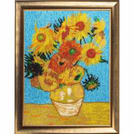 Набор для вышивки бисером с полной зашивкой и круговой техникой Подсолнухи. По мотивам В. Ван Гога, арт. bf271, ТМ Butterfly содержит атласную схему, бисер Preciosa (Чехия, 14 цветов), инструкцию и иглу для вышивания.