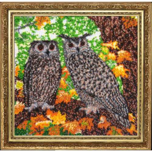 Набор для вышивки бисером с полной зашивкой и круговой техникой Совы, арт. bf512, ТМ Butterfly содержит атласную схему, бисер Preciosa (Чехия, 12 цветов), инструкцию и иглу для вышивания.