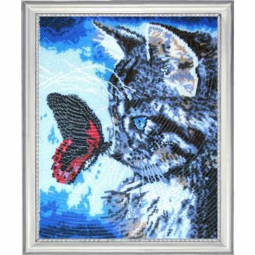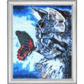 Набор для вышивания бисером с полной зашивкой Котенок и бабочка, 33*27см, Butterfly, bf596