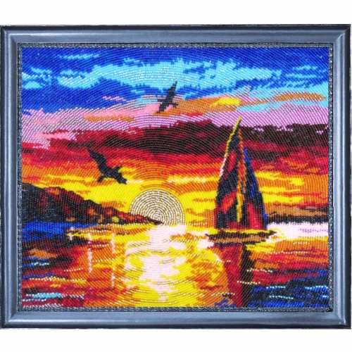 Набор для вышивания бисером с полной зашивкой Морской закат ТМ Butterfly выполнен круговой нелинейной техникой. Содержит ткань с нанесенным цветным рисунком, чешский бисер Preciosa (17 цветов), иглу и подробную инструкцию.