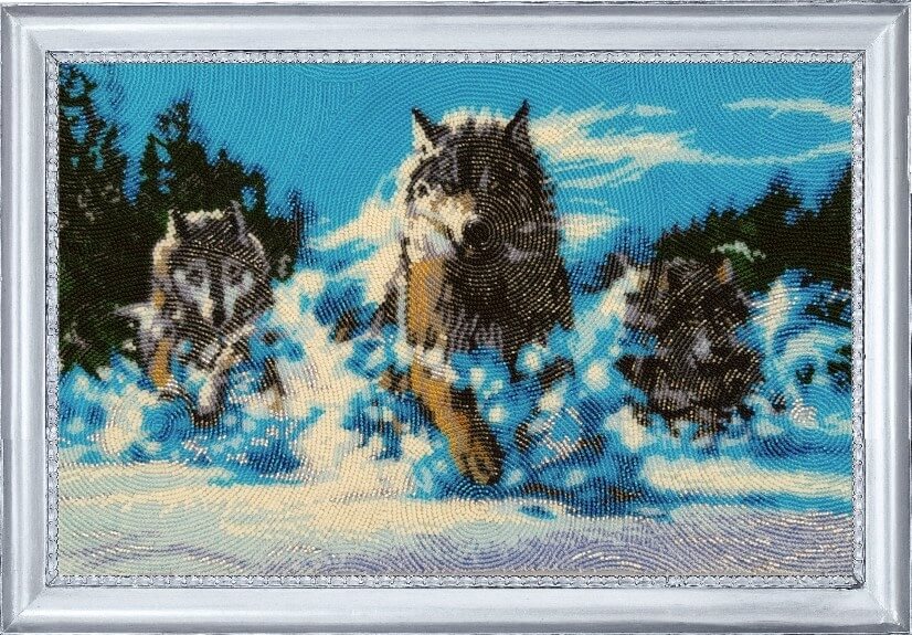 Набор для вышивания бисером с полной зашивкой Волчья стая, арт. bf651, ТМ Butterfly содержит атласную схему, бисер Preciosa (Чехия, 14 цветов), инструкцию и иглу для вышивания.