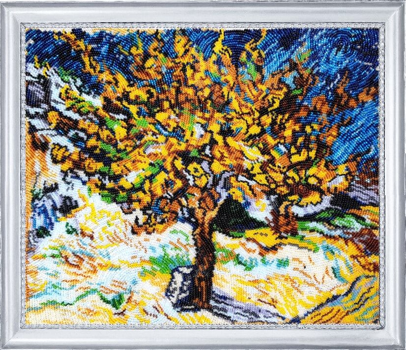 Набор для вышивания бисером с полной зашивкой Тутовое дерево (по мотивам В. Ван Гога), арт. bf753, ТМ Butterfly содержит атласную схему, бисер Preciosa (Чехия, 16 цветов), инструкцию и иглу для вышивания.