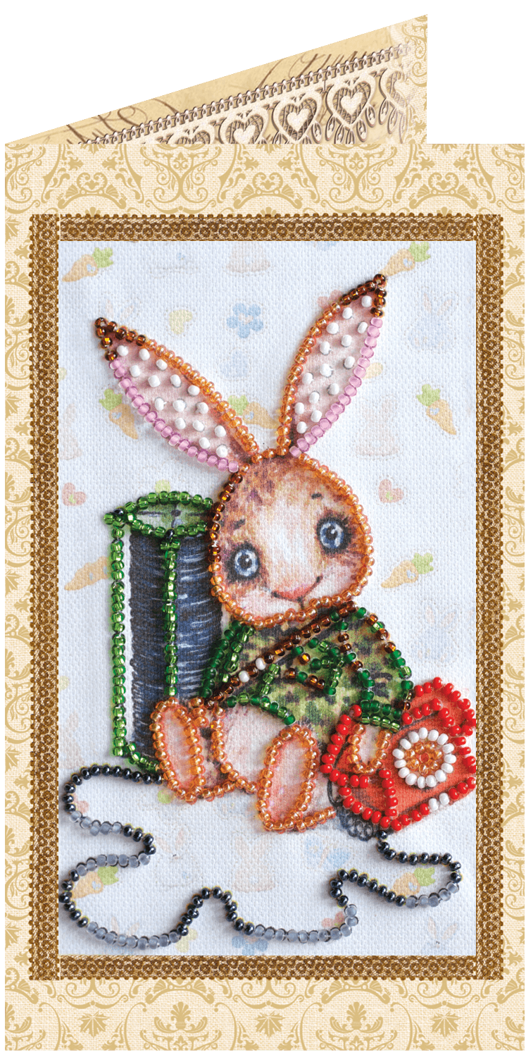 Набор для вышивки открытки бисером Зайка Тедди-1 (арт. AO-109) Абрис Арт содержит картонную открытку со вставкой художественного сукна, на которое нанесены рисунок и схема, бисер (Preciosa), бисерную иглу и инструкцию.