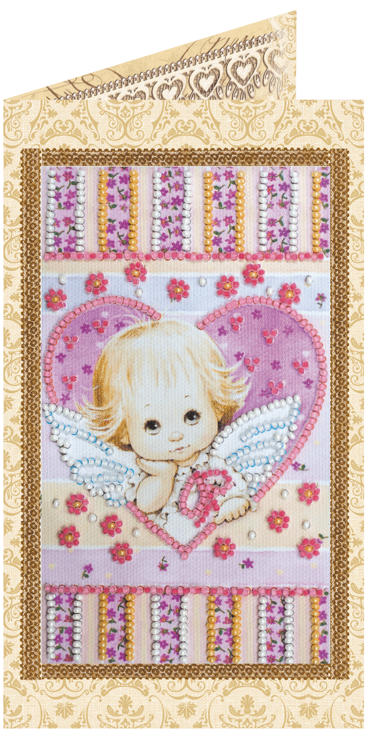 Набор для вышивания открытки бисером Маленький купидон, 8.4х14см, AO-135, Абрис Арт