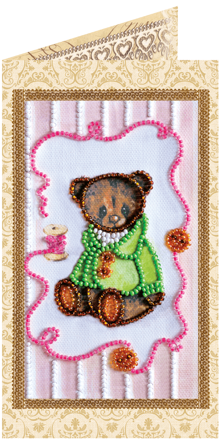 Набор для вышивки открытки бисером Мишка Тедди-6 (арт. AO-107) Абрис Арт содержит картонную открытку со вставкой художественного сукна, на которое нанесены рисунок и схема, бисер (Preciosa), бисерную иглу и инструкцию.
