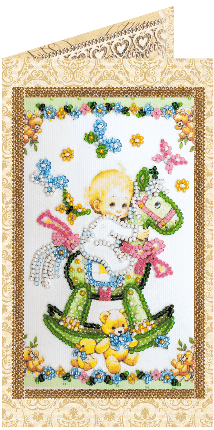 Набор для вышивки открытки бисером Сыночек (арт. AO-138) Абрис Арт содержит картонную открытку со вставкой художественного сукна, на которое нанесены рисунок и схема, бисер (Preciosa), бисерную иглу и инструкцию.