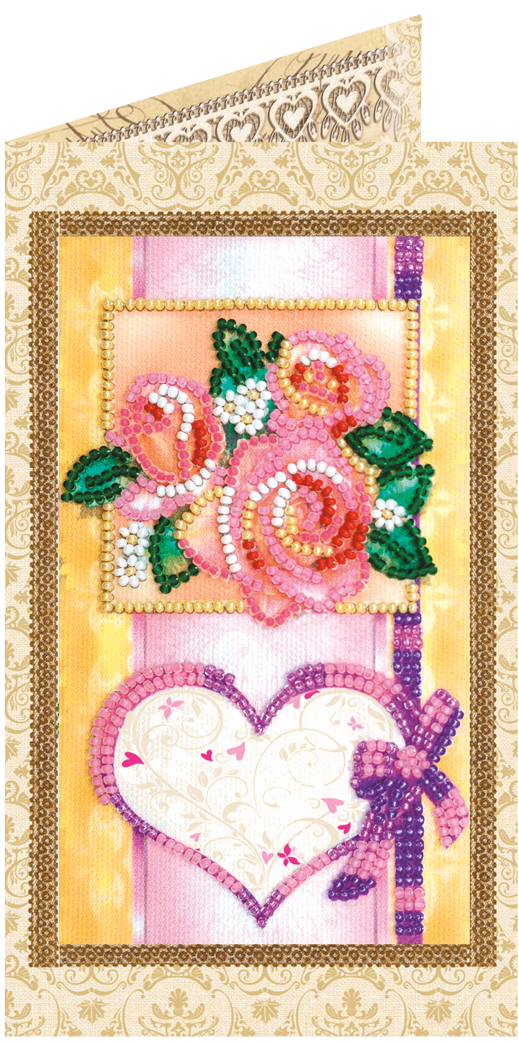 Набор для вышивки открытки бисером С любовью-4 (арт. AO-122) Абрис Арт содержит картонную открытку со вставкой художественного сукна, на которое нанесены рисунок и схема, бисер (Preciosa), бисерную иглу и инструкцию.