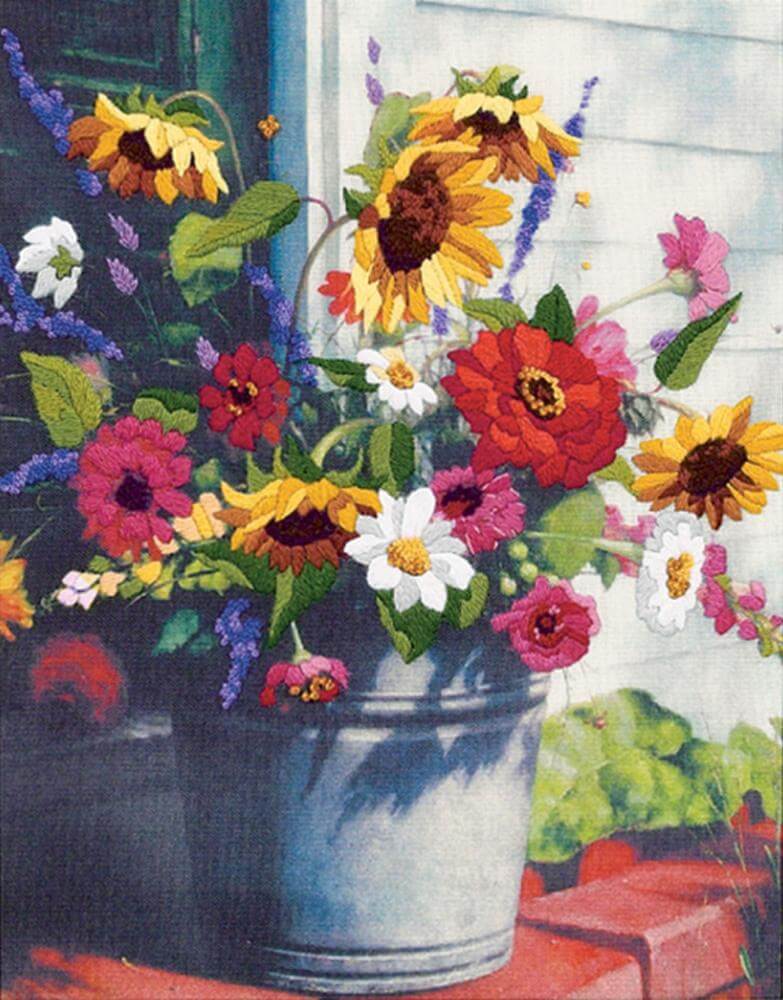 Набор для вышивки гладью Ведро цветов, ТМ Dimensions, арт. 1059287, 36x28см