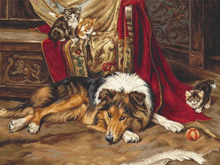 Набор для вышивания гобеленовым швом Неохотный приятель (G585) компании Luca-S содержит изображение готовой работы, схему, мулине Anchor, канву Zweigart pointstich canvas, иглу и инструкцию на русском языке.