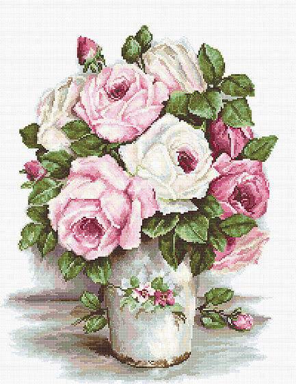 Набор для вышивания гобеленовым швом Смешанные розы (G574) компании Luca-S содержит изображение готовой работы, схему, мулине Anchor, канву Zweigart pointstich canvas, иглу и инструкцию на русском языке.