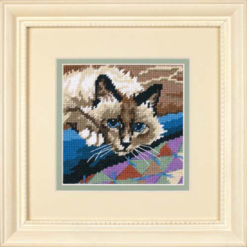 Набор для вышивки гобелена Cuddly Cat, Милый котик, ТМ Dimensions (США) содержит материалы: страмин с нанесенным рисунком (14 каунт), хлопковое мулине Dimensions, инструкцию, цветную символьную схему и иглу.