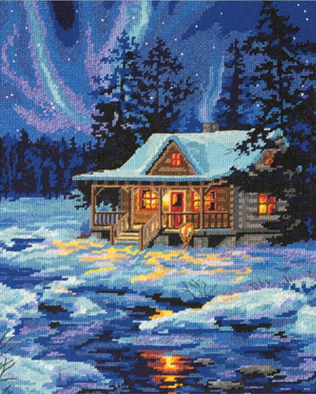 Набор для вышивания Winter Sky Cabin, Зимняя хижина, Гобелен, Dimensions, арт. 71-20072, 27x35см