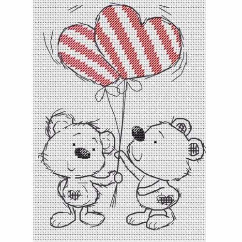 Набор для вышивки крестом Два медвежонка компании Luca-S содержит изображение готовой работы, схему, мулине Anchor, канву Zweigart, иглу и инструкцию на русском языке.