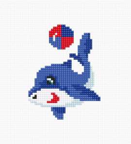 Набор для вышивки счетным крестом Дельфин (B095) компании Luca-S содержит изображение готовой работы, схему, мулине Anchor, канву Zweigart Aida 14 ct., иглу и инструкцию на русском языке.