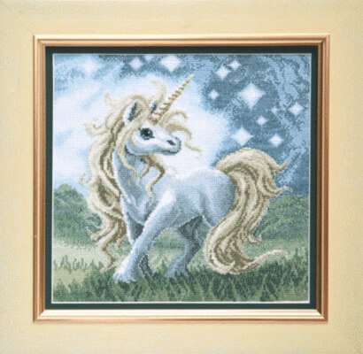 В набор для вышивки крестом Единорог (размер вышивки 24x23.5см), арт. 594, ТМ Чарівна мить входит канва Aida 16, мулине ПНК им. Кирова (в т.ч. металлизированное и светящееся), игла, цветная символьная схема и инструкция.