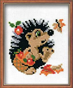Набор для вышивания крестом Ежик с корзинкой (арт. Р-0403) ТМ Риолис содержит шерстяные нитки, канву (10 Aida Zweigart белая), иглу и подробную инструкцию.