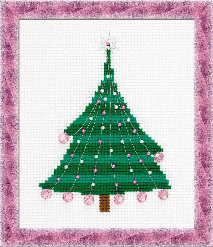 Набор для вышивания крестом Елочка с хрустальными шариками (арт. Р-1352) ТМ Риолис содержит шерстяные нитки, канву (10 Aida Zweigart белая), иглу, бусины и подробную инструкцию.