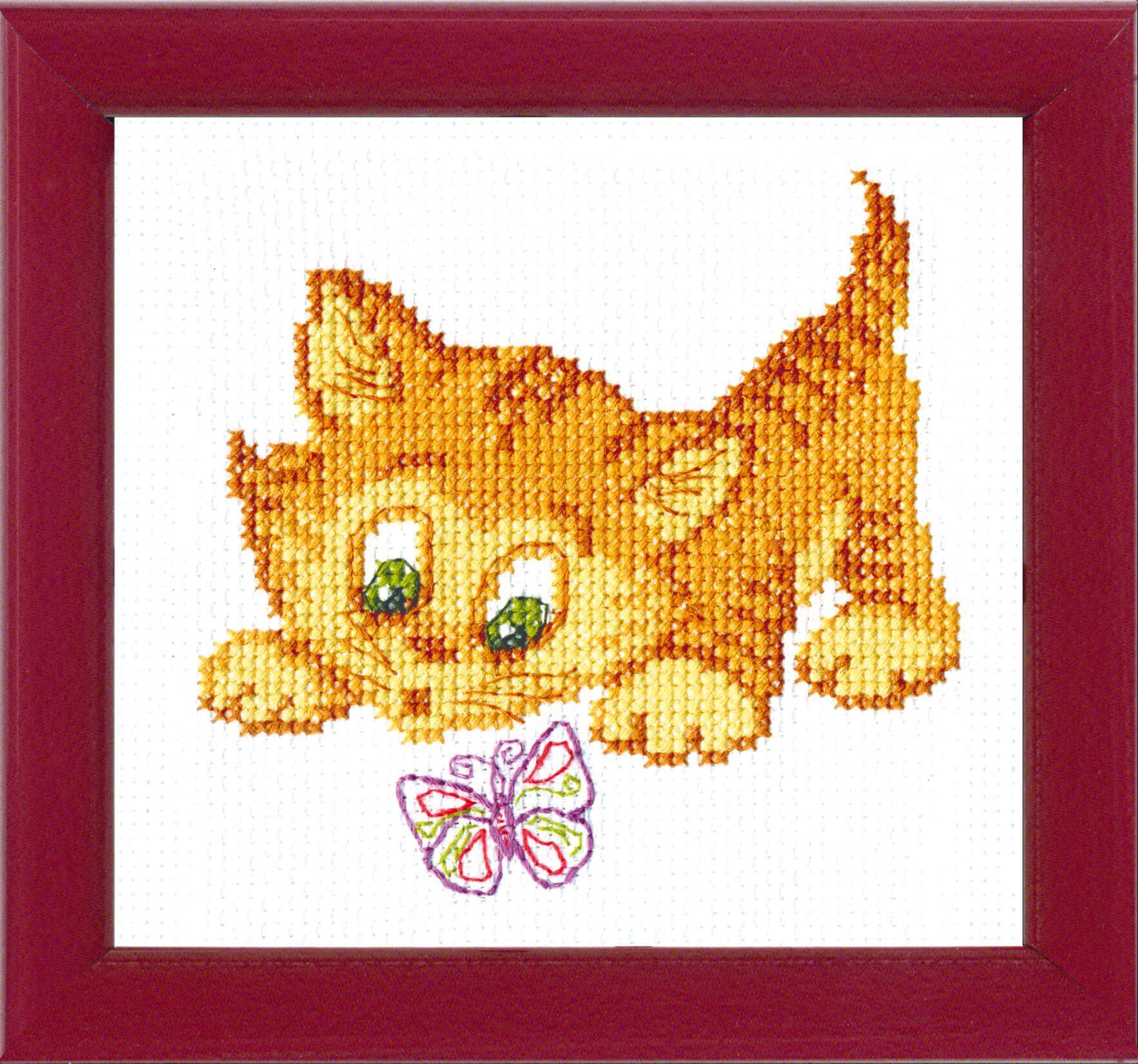 Набор для вышивания крестом Знакомство с бабочкой содержит подробную инструкцию и цветную символьную схему, канву Aida 14, х/б мулине Bestex - 7 цветов и иглу.